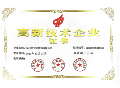 揚(yáng)州市立達(dá)樹(shù)脂有限公司(江蘇立潤(rùn)達(dá)新材料科技有限公司)建于1993年,座落在風(fēng)景秀麗人杰地靈的歷史文化名城揚(yáng)州北郊省級(jí)高新區(qū)內(nèi),屬?lài)?guó)家高新技術(shù)企業(yè)。